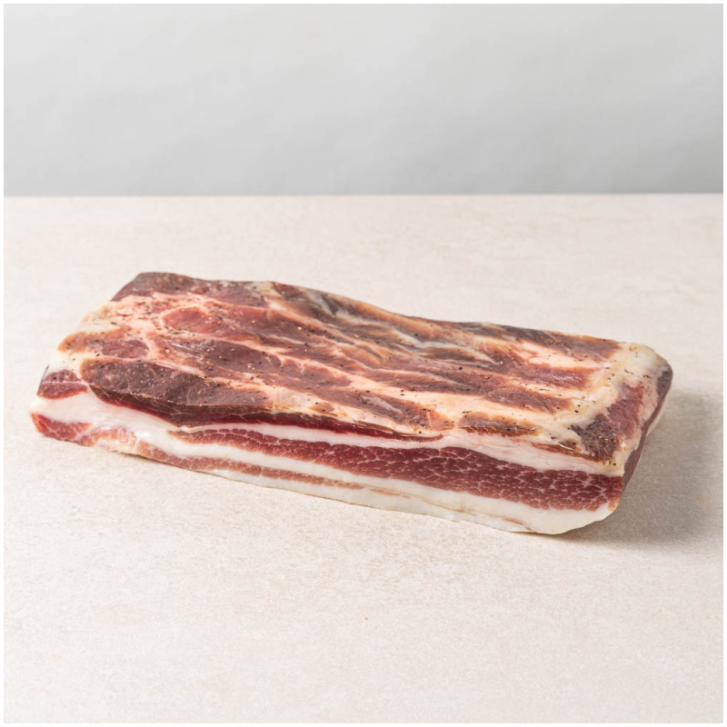 From the best cut of the beef leg, selected and processed tip of the hip in accordance with the regulations of the Consorzio Bresaola della Valtellina PGI. Trimmed to obtain the typical shape, it is salted, left to rest and stuffed into natural casings. Delicate and slightly aromatic flavor.
