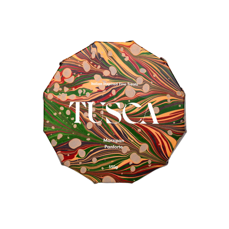 Marzipan Panforte 550g – Tusca’s Marzipan Panforte is a luxurious twist on the traditional Italian treat, handcrafted in Christchurch, New Zealand. This 550g panforte features a rich blend of almonds, citrus peel, and warming spices, enveloped in a delicate layer of marzipan. Its dense, chewy texture and balanced sweetness make it a perfect accompaniment to a cup of tea or a glass of dessert wine. Ideal for festive occasions or as a thoughtful gift.