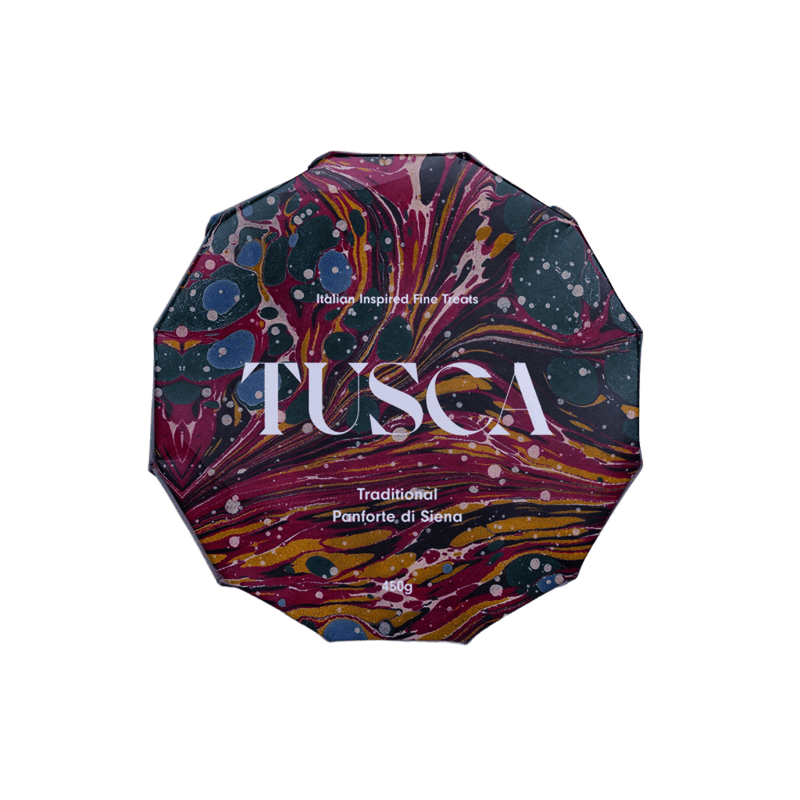 Traditional Panforte 450g a rich and chewy Tuscan‑style cake handcrafted in New Zealand by Tusca, this panforte features zesty citrus peel, roasted almonds, honey and warming spices tempered with a subtle sweetness. Ideal for slicing and enjoying with tea in the morning or paired with a crisp Riesling and creamy blue cheese in the evening.
